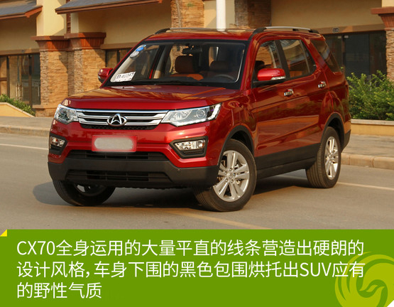 外觀方面,CX70全身運用的大量平直的線條營造出硬朗的設計風格,車身下圍的黑色包圍烘托出SUV應有的野性氣質。上進氣格柵采用三條橫幅式鍍鉻飾條進行搭配,前大燈也呈現出硬朗的風格,內部還加入了LED日間行車燈。CX70是一款7座的車型,車身長/寬/高分別為:4680×1800×1775毫米,軸距為2780毫米。