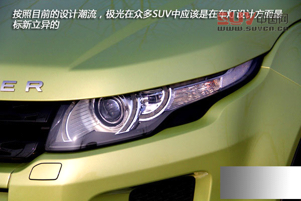 按照目前的設計潮流,極光在眾多SUV中應該是在車燈設計方面最標新立異的。在設計上不但融合了路虎攬勝經典的圓形頭燈設計,也使用了創(chuàng)新光刀片技術的LED日間行車燈進一步勾勒車身的線條。在功能性上,極光的車頭大燈帶有隨動轉向功能,可轉動的透鏡可以為夜晚傳統(tǒng)意義上的死角提供照明。