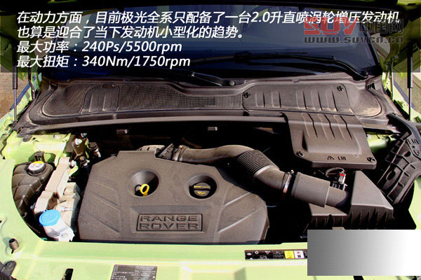 在動力方面,目前極光全系只配備了一臺2.0升直噴渦輪增壓發(fā)動機,也算是迎合了當下發(fā)動機小型化的趨勢。這臺發(fā)動機可以提供240Ps/5500rpm的最大功率和340Nm/1750rpm的峰值扭矩。其實這臺發(fā)動機我們并不陌生,路虎神行者2、捷豹XF、XJL及沃爾沃XC60等多款車型上均搭載的是這臺發(fā)動機,只不過各個車型在動力輸出上各自做了相應的調教。