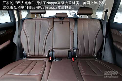 盡管空間沒有太大的變化,但對于X5這個級別的車型來說,乘坐空間還需要去質(zhì)疑或者測量么,我們似乎更應(yīng)該關(guān)注一下它乘坐的舒適度。Dakota的真皮材質(zhì)觸感應(yīng)該說是非常棒的,如果這都滿足不了你對品質(zhì)的訴求,那么快去“私人定制”吧,廠家還提供了Nappa高級皮革材質(zhì)、美國上等橡木、連儀表盤和車門都會用Walknappa皮革包裹。