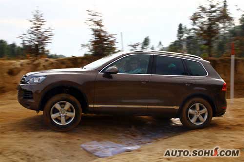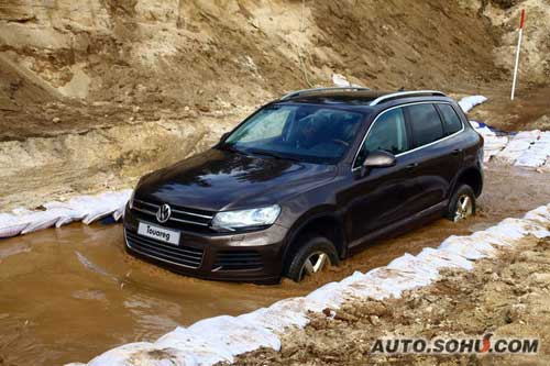 我們還可以為途銳選裝的4Xmotion四驅(qū)系統(tǒng),這個是用戶在購車時能夠自行決定是否加裝的的四驅(qū)系統(tǒng)選件,它同時具備了中央電子差速鎖和低速四驅(qū)擋之外,還增加了一把后橋電子差速鎖,這樣在越野性能上就有了本質(zhì)的提升。從實際的表現(xiàn)來看,鎖定中央及后橋差速鎖后,在通過炮彈坑時(交叉軸),懸空的車輪并沒有出現(xiàn)空轉(zhuǎn),而是與另外一側(cè)車輪保持同樣的轉(zhuǎn)速通過,可見后橋差速鎖還是起到了關(guān)鍵的作用。