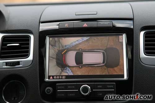 野外的路面觀察是重要的,途銳多角度監(jiān)控攝像頭很有幫助,這和英菲尼迪的全景式監(jiān)控影像系統(tǒng)類似,但途銳的可視面積更大。通過位于車身周圍的四個攝像頭將周圍景物反映到中間的液晶屏上,在泊車時可以更直觀的看到四周情況。同時前部和尾部的攝像頭可以提供更廣的可視角度。這樣的功能要比奔馳G500或路虎的路面監(jiān)測能力進(jìn)一步提升。