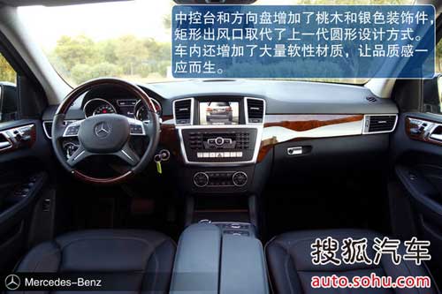 新ML內(nèi)飾相比之前變得不再熟悉,或者說它是重新設(shè)計也一點不為過。其中控臺和方向盤增加了桃木和銀色裝飾件,矩形出風(fēng)口取代了上一代車型的圓形設(shè)計方式。而更加值得表揚的是,新ML的車內(nèi)增加了大量軟性材質(zhì),這讓品質(zhì)感一應(yīng)而生,當(dāng)然在裝配工藝及皮革縫制方面的手藝奔馳家族一貫都是嚴(yán)謹(jǐn)和細(xì)致的作風(fēng)。另外,音響控制區(qū)域的設(shè)計已經(jīng)和其它車型保持統(tǒng)一,中控屏幕內(nèi)所包含的信息更加豐富,而尺寸也相應(yīng)被加大了。