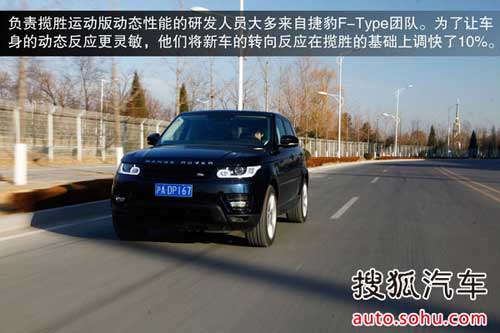 負(fù)責(zé)攬勝運動版動態(tài)性能的研發(fā)人員大多來自捷豹F-Type的研發(fā)團隊。讓車輛能夠以更快的速度平穩(wěn)地駛過彎道,他們將新車的轉(zhuǎn)向反應(yīng)在攬勝的基礎(chǔ)上調(diào)快了10%,工程師還在后橋增加了動態(tài)主動式差速鎖,配合扭矩矢量分配制動系。攬勝運動版的主動防側(cè)傾系統(tǒng)讓車身在過彎時的重心降低,減少車身側(cè)傾。