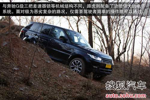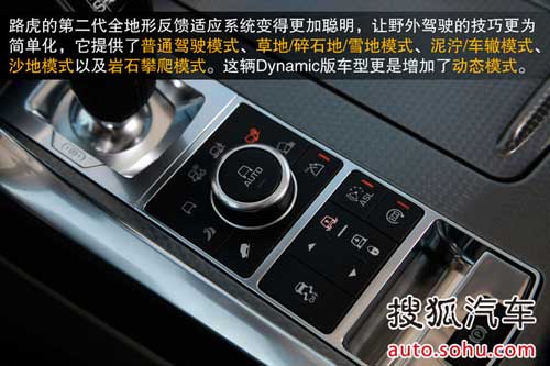路虎為攬勝運動版提供了兩套四驅(qū)系統(tǒng)。一套是帶雙速分動箱的多片式離合器系統(tǒng),初始狀態(tài)下按照50:50的比例平均分配扭矩,但需要時可將全部扭矩輸往前軸或者后軸。另一套四驅(qū)系統(tǒng)重量減少18公斤,采用托森式差速器,默認(rèn)按照42:58的比例分配前后軸的扭矩,但沒有低速擋,調(diào)整扭矩分配的范圍也沒有前者那么廣(前軸最多63%,后軸最多77%)。我們所試駕的這輛車匹配了前一套四驅(qū)系統(tǒng),還配備了動態(tài)主動式后差速鎖,這個差速鎖配有一個電控差速器,可瞬間改變鎖止程度,對提高車子的運動性和越野能力都有幫助。