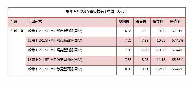 采用了全新的哈弗家族臉譜,哈弗H2前臉與哈弗H8相似,大面積鍍鉻進氣格柵設計,顯眼的HAVAL車標加上大嘴式前進氣格柵,中網配以鍍鉻飾條以作修飾,整體車頭感覺飽滿大氣,張揚而不失時尚感。發動機蓋上的4條棱線彰顯出整車的肌肉感。配置方面,哈弗H2配備了定速巡航、無鑰匙進入、一鍵啟動、藍牙免提通話系統、GPS導航、前排座椅電加熱,以及雙安全氣囊、倒車影像、胎壓監測等。在二手車市場中,哈弗系列在SUV級別中,一直受到消費者關注,整體保值率在國產SUV級別中整體較高,新出的哈弗H2亦不例外,外觀頗具視覺沖擊力,在二手車市場停放總會有人不時的前來圍觀,成為一道亮麗的風景線。在北京地區,二手哈佛H2相對略少,但對于2014年才上市的車型來說,也是相當不錯的,其中主要集中2014年間上牌居多,市場標價在6.6萬-9.5萬之間不等。平均庫存周期約在18-25天附近,周轉期略微較長。H2的尺寸算是小型SUV中比較大的,長度超過4.3米,與其他對手都是4.2米左右的車身長度相比,從外形觀感上,它也足夠硬朗了。所以它的受關注度比較高,但由于保有量規模小,所以其二手車數量稀少,甚至在舊車市場達到奇貨可居的程度,價格略高,但賣得很快,庫存周期都比較短。