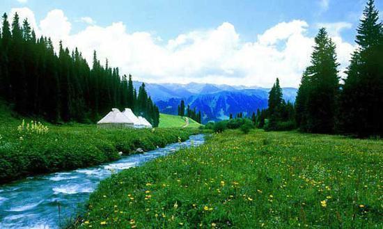 鞏乃斯林場位于新疆巴音郭楞州的和靜縣巴音布魯克區(qū)內(nèi),在鞏乃斯河的上游,是鞏乃斯草原所在地。放眼望去,冰嶺雪山、藍天白云、松濤林海,奔騰的鞏乃斯河,星羅棋布的蒙古包,滿山遍野的綠草山花,撒滿山岡的珍珠般的羊群,一幅幅美麗的畫卷,無不 讓人心曠神怡。班禪溝,原名叫茶汗烏蘇郭勒,意為白水溝,山請水秀,牧草如茵,是和靜縣鞏乃斯鄉(xiāng)最美麗的一塊夏牧場。