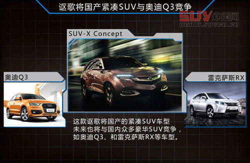 Acura(謳歌)在未來國產(chǎn)后的產(chǎn)品規(guī)劃方面,計(jì)劃投產(chǎn)的首款車型是上海車展期間首發(fā)的緊湊型SUV Concept SUV-X,并計(jì)劃在三年左右的時(shí)間實(shí)現(xiàn)國產(chǎn)。本田中國總經(jīng)理倉石誠司表示,“由于緊湊型SUV是未來增長最快也是最大的一個(gè)細(xì)分市場(chǎng),環(huán)境問題和中國的能耗限制越來越嚴(yán)格,同樣是我們選擇率先國產(chǎn)緊湊SUV的原因。”而這款車型未來也將與國內(nèi)市場(chǎng)上眾多豪華SUV競(jìng)爭(zhēng),如奧迪Q3、寶馬X1以及雷克薩斯RX等。此外,這款SUV也是Acura(謳歌)首次在北美市場(chǎng)以外進(jìn)行全球首發(fā)的車型,從而也展示出中國市場(chǎng)的重要性。