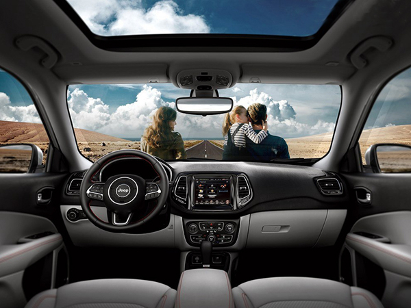 外觀方面,新車的整體造型更接近于大切諾基,延續硬派SUV的經典風格。其中前臉采用了鍍鉻處理的標志性家族七孔進氣格柵,同時前燈組也與格柵相連。此外,該車A柱、車頂及部分尾門與車身其他部位顏色不同,采用了亮黑色處理,雙色車身的視覺效果非常美觀。尾部方面,尾燈采用黑邊進行勾勒,后保險杠采用了黑銀雙色設計,并配有單邊共兩出式鍍鉻排氣口。