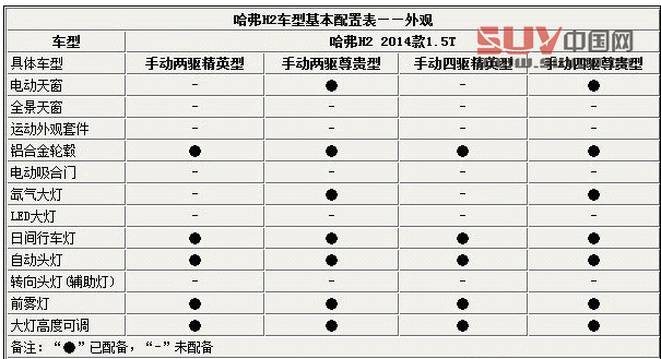 SUV中國(guó)網(wǎng)報(bào)道 長(zhǎng)城汽車近日公布了對(duì)哈弗品牌追加投資25.92億元的計(jì)劃,并對(duì)旗下SUV陣容進(jìn)行擴(kuò)充,對(duì)于小型SUV這一新興市場(chǎng),哈弗在2013年上海車展期間亮相了H2車型。長(zhǎng)城汽車總裁王鳳英女士曾表示:“長(zhǎng)城需要明星產(chǎn)品,H2算是其中之一,未來H2更是要達(dá)到20萬輛。”近日網(wǎng)通社獲取了哈弗首款小型SUV——H2的詳細(xì)配置信息,新車將推出四款車型,且全系均搭載了1.5T增壓引擎。