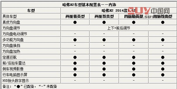 哈弗H2車型兩驅(qū)與四驅(qū)的尊貴版車型標(biāo)配了電動(dòng)天窗和氙氣大燈等,全系均配有日間行車燈,使得白天的行車安全大大得到了提升。內(nèi)飾方面全系均標(biāo)配真皮方向盤,并有多功能調(diào)節(jié)鍵,給予了駕駛員更多的方便性,此外定速巡航、行車電腦電視屏等在全系車型上都得到了體現(xiàn)。