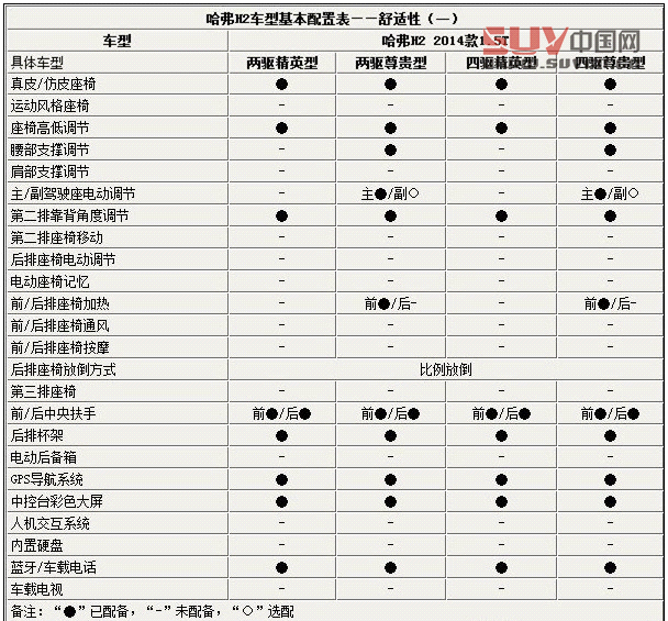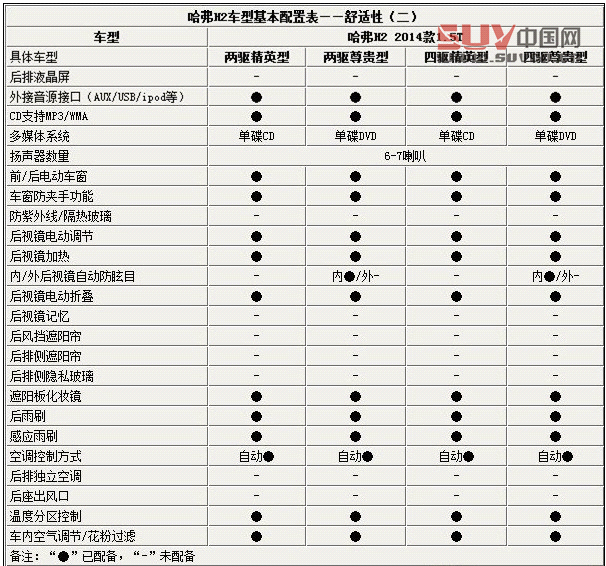 舒適性配置方面可謂是眾多消費(fèi)者關(guān)注的方面,哈弗H2在尊貴型車型上配有主駕駛座電動(dòng)調(diào)節(jié),且副駕駛座可選裝該配置,前后中央扶手全系車型均配有。此外,外接音源接口、藍(lán)牙等全系都有標(biāo)配,這對(duì)于消費(fèi)者來說娛樂性也非常出色,全系標(biāo)配的車內(nèi)空氣調(diào)節(jié)和花粉過濾也保證了車內(nèi)成員的健康。