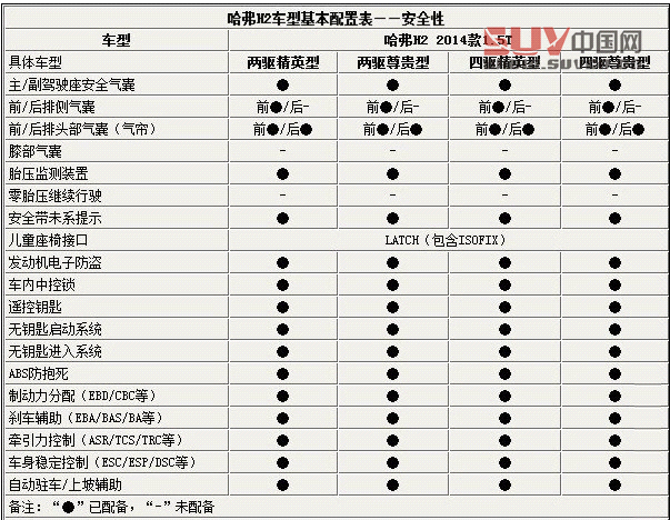 安全性對(duì)于駕駛員和乘客來說是最重要的一方面,哈弗H2車型全系均配備了ABS防抱死、剎車輔助等配置,對(duì)于駕駛員以及乘客來說大大提高了安全性。對(duì)于有兒童的家庭,哈弗H2全系車型還配有兒童座椅接口,對(duì)兒童的安全保護(hù)也非常全面。