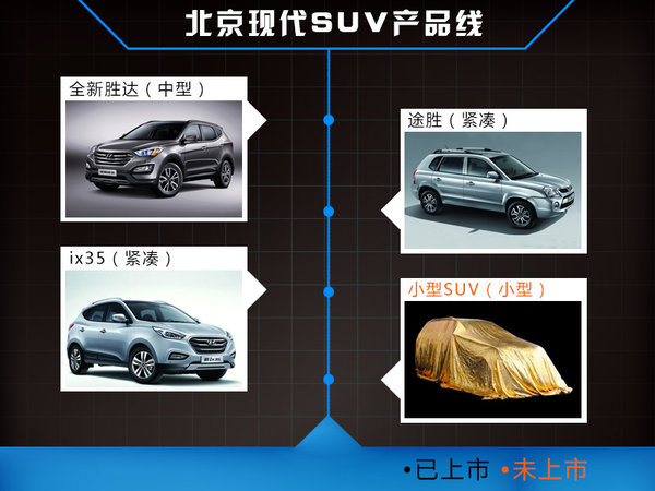 SUV中國網(wǎng)報道 北京現(xiàn)代旗下名圖即將在11月19日正式上市,逐步推出全新轎車產(chǎn)品的同時,北京現(xiàn)代還在對小型SUV進行著研發(fā)工作。近日網(wǎng)通社了解到,北京現(xiàn)代小型SUV將在2014年10月上市。動力方面,小排量增壓化已逐漸成為了各大車企正在研發(fā)的技術之一,北京現(xiàn)代自然也不例外,正在研發(fā)的全新小排量引擎有望成為北京現(xiàn)代首款小型SUV的動力系統(tǒng)選擇。