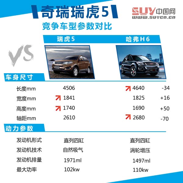 目前奇瑞在SUV市場中銷量成績下滑,瑞虎5作為iAUTO平臺下全新SUV車型,肩負著重要的擔子。新車在外觀上采用奇瑞全新LOGO,進氣格柵和大燈的設計也開始向艾瑞澤系列靠攏,體現家族化設計特點。瑞虎5搭載了一款2.0L自然吸氣發動機,匹配CVT變速器,最大功率為102kw。瑞虎5推出后將直接挑戰國內SUV銷量第一的長城哈弗H6,在車身尺寸上,瑞虎5雖然在長度和軸距上處于劣勢,但是寬度和高度的優勢,使得車內橫向和頭部空間得到了保障。