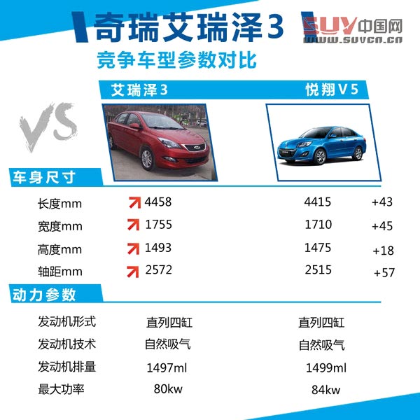 艾瑞澤3是新品牌發展戰略中艾瑞澤系列第二款車型,在外觀設計上,艾瑞澤3的進氣格柵采用了網狀的設計,全新的LOGO置立其中,與艾瑞澤7中前臉設計幾分相似,體現了家族化風格。艾瑞澤3推出后,將競爭對手鎖定在了長安悅翔V5等國內自主A0級轎車產品上,在國內自主A0級轎車市場中,新車在車身尺寸上相比悅翔V5具有明顯優勢,車身長度和軸距分別達到4458mm和2572mm。在動力方面采用1.5升發動機,最大功率80kw,雖然數據并不搶眼,但基本滿足日常需求。