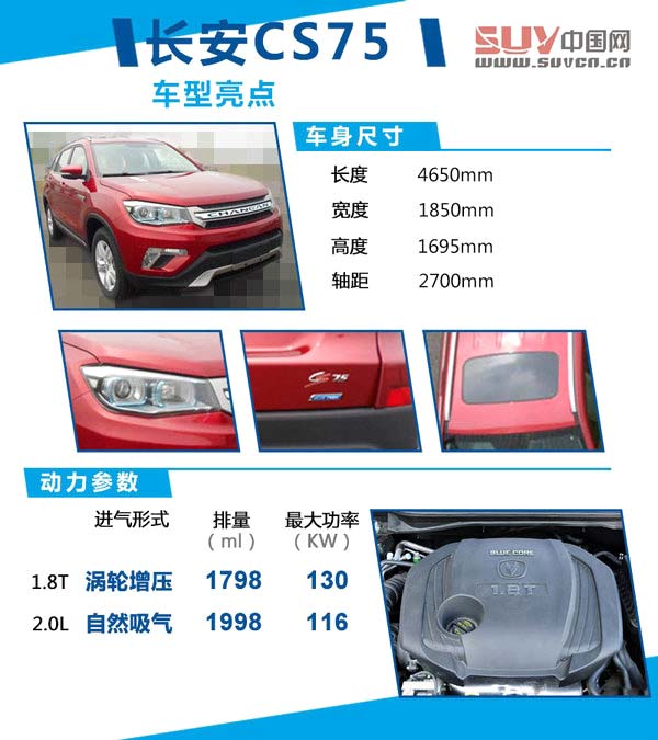 長安汽車目前僅有一款小型SUV——CS35,在持續火熱的SUV市場中長安還將推出第二款SUV——CS75,其定位于緊湊級SUV。長安汽車董事、副總裁朱華榮先生在接受媒體采訪時曾表示:為了擴展長安汽車的產品陣容,未來兩年內我們將發布包括CS75在內的7款新車。近日網通社從國家工信部獲取了長安CS75的相關信息,動力方面長安CS75將搭載1.8T和2.0L兩款發動機,其中1.8T引擎的功率已經超越大眾途觀所使用的1.8T發動機。