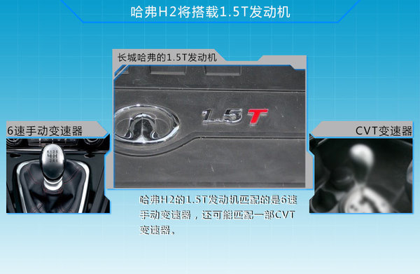 外觀上,哈弗H2采用了家族化的設計風格,只是個別位置做了調整。前臉部分,哈弗H2的進氣格柵明顯大于哈弗H6,而且進氣格柵上紅色的“HAVAL”標識顯得格外醒目,新前大燈的造型要比H6顯得更加犀利;哈弗H2的尾部用“HAVAL”的標識代替了原有的長城LOGO,后剎車燈外形稍有改變。動力方面搭載的是與哈弗H6相同的型號為4G15B的1.5T發動機, 與之匹配的除了目前已知的6速手動變速器外,還可能匹配一部CVT變速器,并且有兩驅和四驅兩種驅動方式可供選擇。