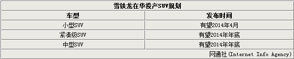 在國內市場中“SUV熱”持續不減,在銷量上也是節節攀升,東風雪鐵龍一直是國內合資汽車品牌的主力軍,在產品線上已經涵蓋了小型車到中級車,但在SUV領域卻仍處于空白狀態。近日,東風雪鐵龍內部人士向網通社透露:雪鐵龍計劃在國內投產3款全新SUV車型,分別是小型、緊湊級和中級SUV,這3款車有望在明年年底正式亮相。