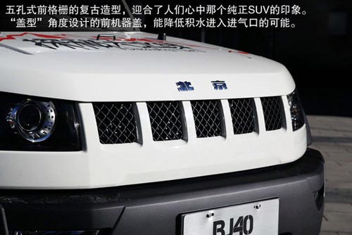 復古情節、時代潮流、男人喜歡的硬派、個性改裝,似乎越野迷們喜歡的東西,它都具備了。首先從整體車身結構來看,BJ40的大小尺寸剛剛好,4350mm的車長和2450mm的軸距雖然并不大,但不會像某些SUV盲目追求空間,而造成視覺上的臃腫。整個車身硬朗的折線與柔美的曲線完美的融合在每一個轉折。車身接近角與離去角都達到了30度以上,保證了越野的通過性。