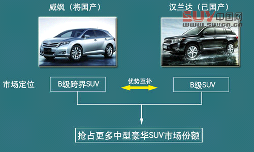 根據(jù)廣汽豐田此前所公布的發(fā)展規(guī)劃,到2015年該品牌旗下國產(chǎn)車型將增加至7-9款,國產(chǎn)威颯則有望“身處其中”,而定位于跨界SUV市場的威颯則與漢蘭達形成了差異化,為廣汽豐田在SUV市場中爭取更多份額。