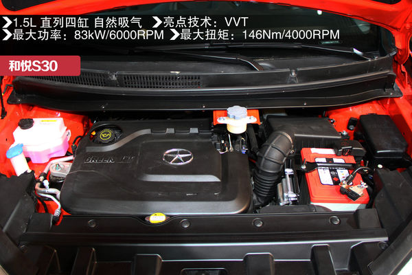 和悅S30內飾以黑色為主調,配以銀灰色內飾條,顯得質感十足。中控臺層次分明,裝有大尺寸顯示屏,清爽靚麗,彰顯商務品質。配置方面,新車全系標配發動機電子防盜、車內中控鎖、倒車雷達、行車電腦、AUX-IN接口、后視鏡電動調節、自動防眩目后視鏡、后雨刷。頂配車型將配有,無鑰匙進入及一鍵啟動、電動天窗、倒車影像、藍牙車載電話連接等配置。