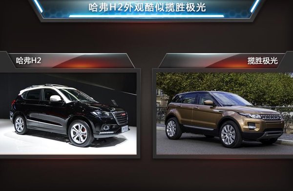 在外觀造型方面,哈弗H2與路虎極光最為相似的地方,莫過于車身采用了雙色設計。此外,通過一些細節(jié)處我們同樣可以發(fā)現(xiàn)攬勝極光的影子,比如在霧燈下面放置的LED日間行車燈等。哈弗H2車頂線條和擾流板的處理,令整車在大氣之余,同樣不失動感。