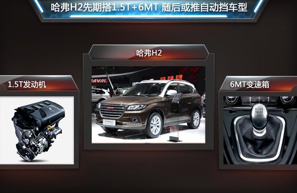 動力方面,先期上市的哈弗H2將搭載1.5T+6MT的動力組合。據(jù)長城汽車官方公布的數(shù)據(jù)信息,該款1.5T增壓引擎將會提供最大功率110kw,峰值扭矩210Nm的動力表現(xiàn)。此外,在2014年北京國際車展上,長城汽車曾官方表示,未來會考慮在哈弗H2車型上使用自動變速箱的計劃。