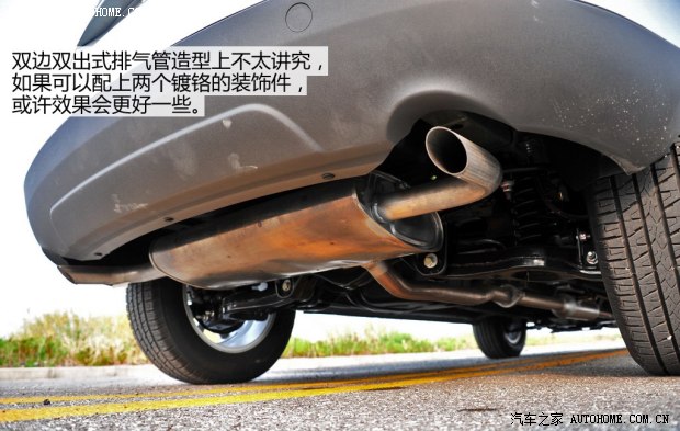 再往下看,三點(diǎn)式倒車?yán)走_(dá)、倒車影像探頭系數(shù)配備,主動安全配置方面做的挺到位。雙邊雙出式排氣管造型上不太講究,如果可以配上兩個鍍鉻的裝飾件,或許效果會更好一些。