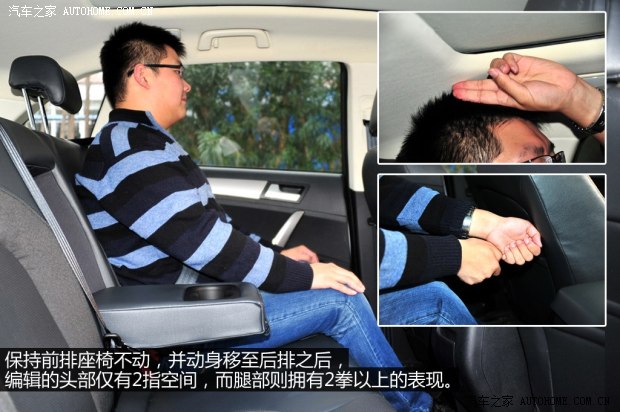 車內(nèi)空間方面,身高176cm的編輯身處前排,頭部約有4指左右的空間;而此時保持前排座椅不動,并動身移至后排之后,編輯的頭部僅有2指空間,而腿部則擁有2拳以上的表現(xiàn),我們認(rèn)為在車內(nèi)空間方面,眾泰T600做的還是相當(dāng)不錯的。
