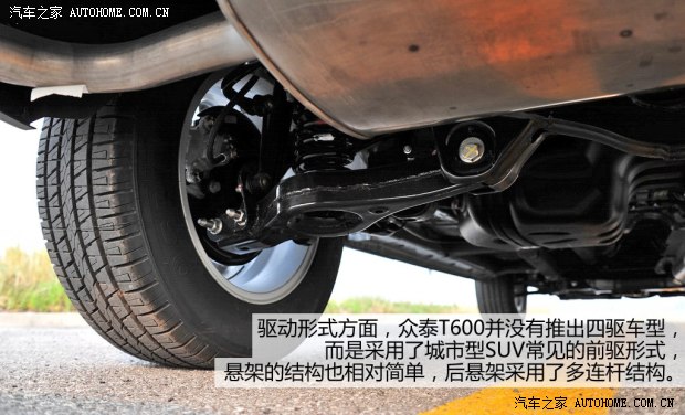 驅(qū)動形式方面,眾泰T600并沒有推出四驅(qū)車型,而是采用了城市型SUV常見的前驅(qū)形式。懸架的結(jié)構(gòu)方面,后懸架采用了多連桿結(jié)構(gòu),視覺效果很工整很結(jié)實(shí),而實(shí)際的駕駛感受也證明了這套懸架系統(tǒng)確實(shí)調(diào)的不錯。
