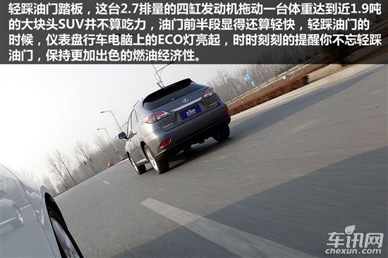 對于RX的懸架系統,整體調校還是偏軟,能夠明顯感到,其是更加重視城市和公路性能。路面的碎石子能被很好的過濾掉,舒適性十分不錯,當經過顛簸路面的時候,RX270的車身震動還是有些明顯,底盤對于低幅度減速帶的處理有些不太明顯。