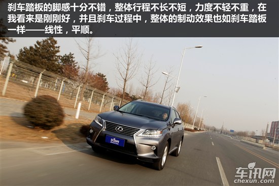在百公里制動測試過程中,RX270車身相對較軟的懸架系統沒能給車輛提供充足的支撐力,車身姿態顯得有些狼狽。制動過程中,車頭下沉的有些明顯,另外伴有車尾的輕微搖擺,不過一切都在可控范圍之內。