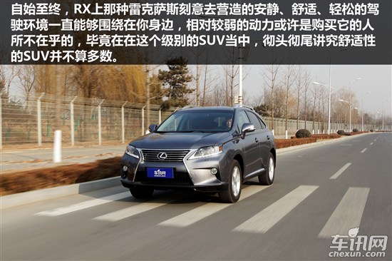 通過對于RX270的試駕及測試,我想我可以說RX270放棄了動力性以及操控性能,完全向著舒適性妥協,而且那種舒適性是從骨子里流出來的舒適與安靜。在我看來,這樣一臺車,對于經常跑高速的朋友來說是一個不錯的好選擇,另外就是渴望寧靜生活的人。