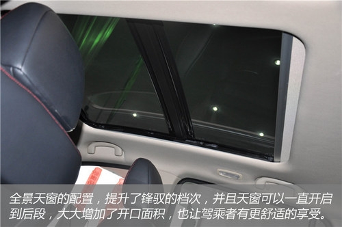 對于鋒馭來說不得不提的還有全景天窗,有特色的是鋒馭獨有的雙開天窗,其中遮陽簾也為電動調節。