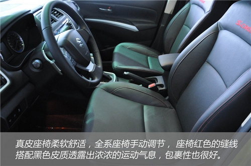 座椅紅色的縫線搭配黑色皮質透露出濃濃的運動氣息,其舒適度和兩側的包裹也都十分到位,而座椅調節只提供手動模式。而2620mm的軸距在同級別中表現一般。