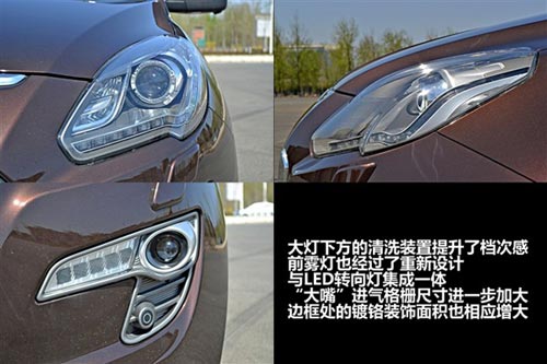 外形細節方面,2014款大7變化顯著。首先前大燈造型變得更有棱角,同時內部配備LED日間行車燈和遠近光一體氙氣大燈,緊跟時代潮流。大燈下方的清洗裝置提升了檔次感。前霧燈也經過了重新設計,與LED轉向燈集成一體。“大嘴”進氣格柵尺寸進一步加大,邊框處的鍍鉻裝飾面積也相應增大。這些變化讓2014款大7的風格變得更加前衛和時尚。