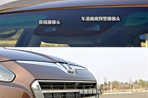 14款納智捷大7除了車頭配備了雷達探頭之外,還在進氣格柵的隱蔽處配備了前置攝像頭,前風擋頂部配備了夜視攝像頭以及車道偏離預警攝像頭,這些同級車型中絕無僅有的配置不僅讓大7具有很強的科技感,也有效的提升了車輛的行車安全。