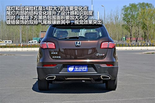14款大7車尾設計的簡潔舒展,清晰可見的線條勾勒首先為車尾帶來了年輕活躍的時尚氣息。尾燈和后保險杠是14款大7的主要變化點。尾燈內部的結構變化提升了設計感和識別度。同時,尾部下方黑色包圍面積要加大不少,鍍鉻裝飾的雙排氣尾喉鑲嵌其中,視覺效果突出。