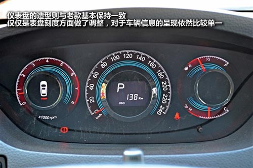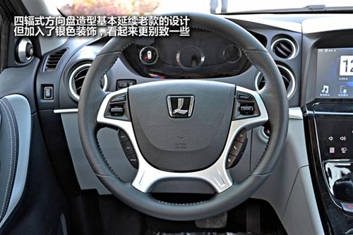 四輻式方向盤造型基本延續老款的設計,但加入了銀色裝飾,看起來更別致一些。方向盤采用真皮包裹,3點和9點位置加入打孔處理,增加透氣性和舒適度。儀表盤的造型則與老款基本保持一致,僅僅是表盤刻度方面做了調整,對于車輛信息的呈現依然比較單一。