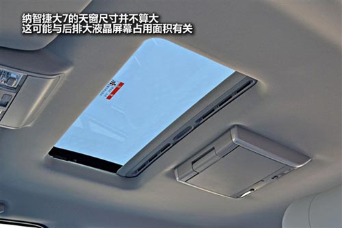 納智捷大7的天窗尺寸并不算大,這可能與后排大液晶屏幕占用面積有關。車門內襯采用皮質包裹,電動車窗僅駕駛席一側具備一鍵起降功能。