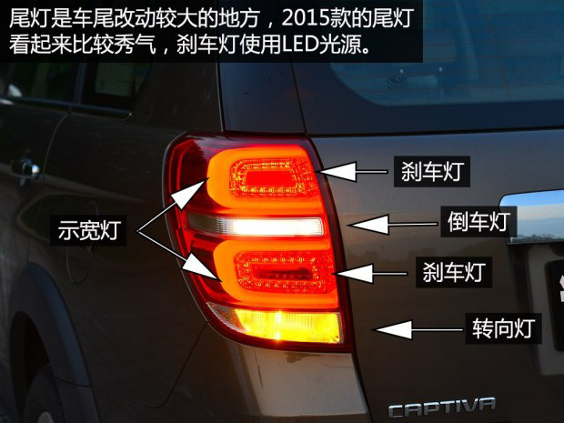 從對照圖中,我們可以看到2015款與2014款在前臉的改變實在微乎其微,這樣微小的變化并不只是在前臉而已,車側、車尾都有這種微小的變化。不過跟前臉相比,尾燈的變化幅度比較明顯,把原來紅色/透明的尾燈組,換成了以紅色為主的燈組,并增添LED光源。