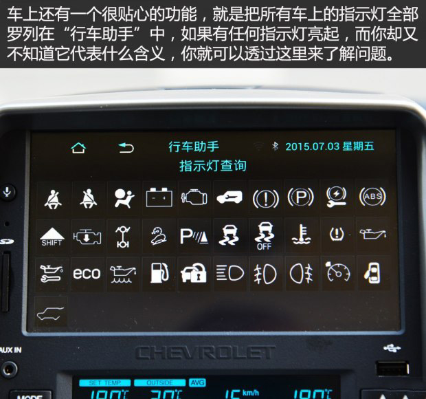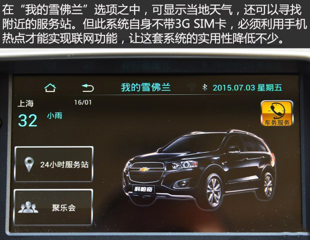 至于其他功能方面,科帕奇具備一些貼心的功能,例如上方介紹的“我的雪佛蘭”,但是因為當天試駕車并未連上網路(這套系統需要走手機流量),所以未能完全展現它的便利性。這樣的配置或多或少能夠為科帕奇加點分。總結這套系統的表現,我們認為如果主頁頁面能將畫面再做進一步優化,會有更好的用戶體驗,因為五顏六色的主頁按鍵有點拉低檔次的感覺。