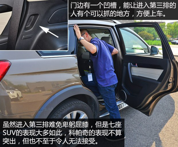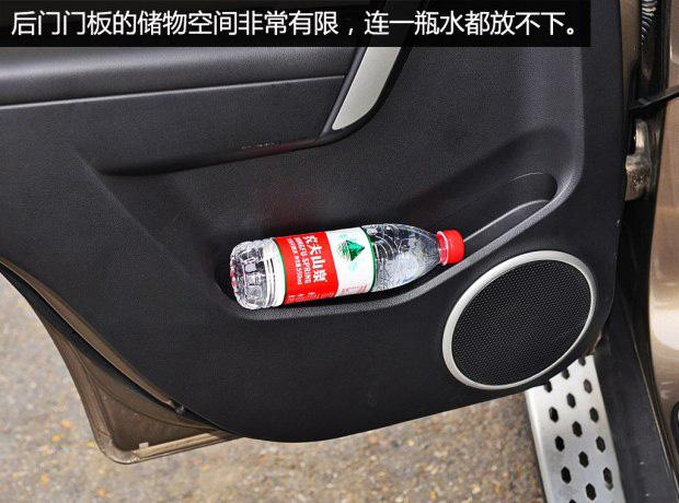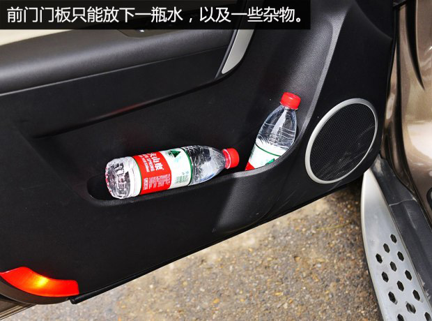 至于門板上的儲物空間,科帕奇的表現只能說是差強人意,前門板上只能放下一瓶水,但是后門板連一瓶水都放不下。至于后排的其它儲物空間,表現的也不是很好,比起日系對手來說,這樣的儲物空間設計實在有點落后了。