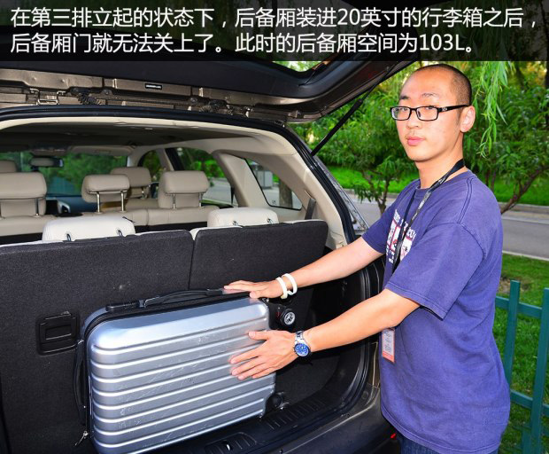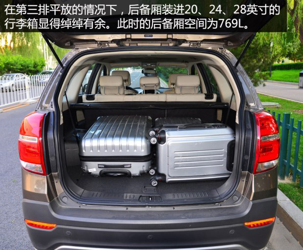 后備廂空間與其他中型SUV相比,就明顯顯得有些不足了,特別是在第三排立起時,空間顯得有些窘迫,因為經過我們的實測,在第三排立起的時候,連20英寸的行李箱都無法放入,這跟其他中型SUV相比,明顯是個短板。畢竟科帕奇的車身長度不到4.7米,而中型SUV中的兩大戰將——漢蘭達與銳界的車長都超過4.8米,科帕奇在后備廂空間方面難免吃點虧。