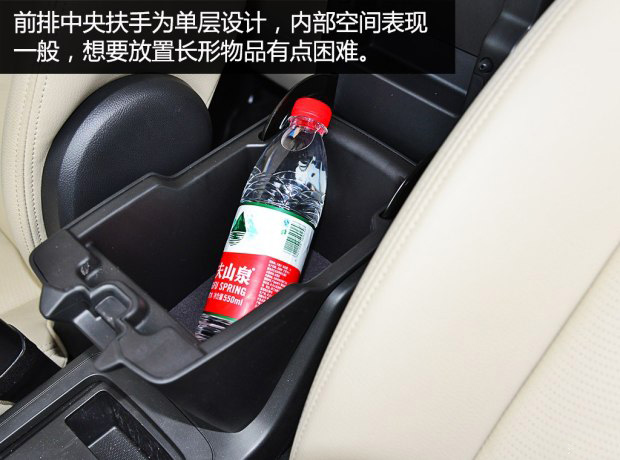 科帕奇的前排儲物空間表現還算不錯。舉例而言,前方地臺下方的大型儲物格,直接放進兩瓶礦泉水不是問題。更不用說手機、錢包、充電寶等等雜物能夠輕松的放進這個儲物空間,不過打開它的時候,必須犧牲掉杯架的功能,有些麻煩。
