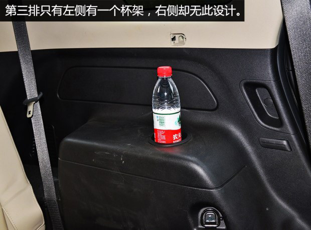 來到第二排與第三排,會發現儲物空間實在令人有些失望,光是門板上沒有充裕的置物空間這點就讓人感到有些不便,再加上杯架在中央扶手處,如果要是用的話,嚴重影響儲物的便利性。而第三排只有左側有杯架,但是右側卻沒有,令人猜不透設計師的設計理念。