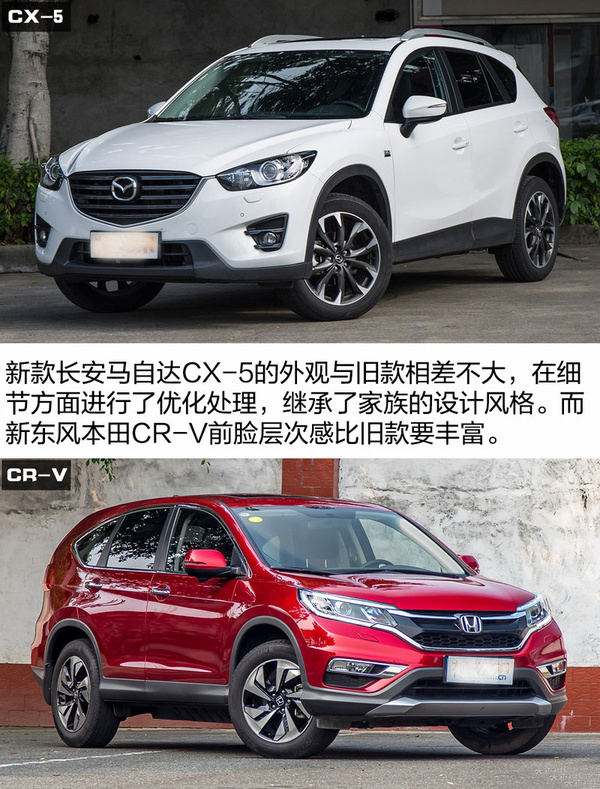 外觀方面,馬自達新款CX-5變得更加精致,著重在細節方面進行精雕細琢,同時搭載了眾多高科技的配置。而本田新CR-V外觀則有翻天覆地的變化,層次感變得豐富起來,讓人眼前一亮。