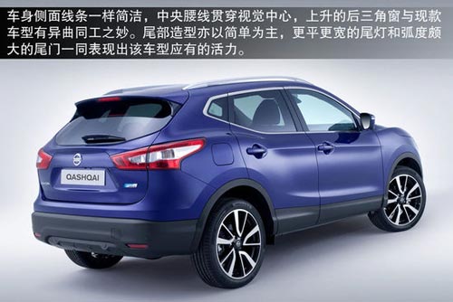 新車型的整體造型更為硬朗、平直,整體風格向家族大哥奇駿靠攏。保險杠下方黑色的塑料進氣格柵和車身裙邊上黑色的塑料飾板一起表現出跨界效果,同時也減輕了刮擦帶來的損失。車身側面線條一樣簡潔,中央腰線貫穿視覺中心,上升的后三角窗與現款車型有異曲同工之妙。尾部造型亦以簡單為主,更平更寬的尾燈和弧度頗大的尾門一同表現出該車型應有的活力。