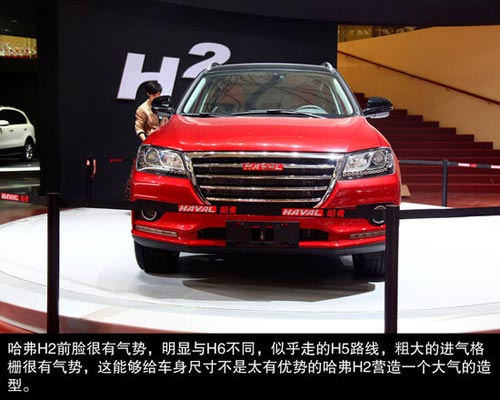 哈弗汽車經過對外觀造型的整合,已經將H2、H6、H7和H8的造型趨于統一風格,只有哈弗H5依然保持著其原來的設計。繼承了家族設計風格的H2雖然作為入門級產品,但其兇悍的前臉造型一點不乏氣勢;粗大的進氣格柵搭配紅色“HAVAL”標志能很大程度彌補尺寸上的先天略勢,而除了橫向格柵版本,H2還有一種更為時尚的鍍鉻網狀格柵可供選擇。